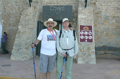 Descendemos por una pista para volver a subir.. Antes del nuevo ascenso esperamos a los más rezagados. Descansamos. Javier es entrevistado por radio 9 sobre esta ruta a través del móvil Mientras, almorzamos. Buscamos el sendero PR-V 2 por el que nos dirigiremos a las Cuevas de Canalobre. En todas estas marchas hay un motivo de conservación que destaca sobre los demás. Hoy es protagonista el Camino de Santiago. Todo caminante sueña con recorrerlo alguna vez. Y cuando lo pruebas, vuelves, nos dice Arturo. Está organizando Javier un viaje a esas tierras para octubre próximo. Cuatro días de caminata. Arturo y Javier nos cuentan, mientras caminamos, algunas anécdotas de sus experiencias senderistas por tierras gallegas en esta ruta que algunos hacen por devoción cristiana, otros por pasión pagana, otros por un poco de las dos.